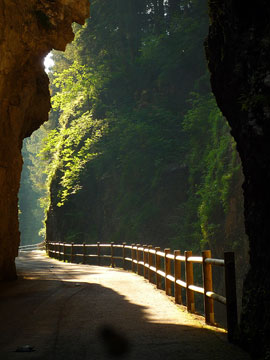 100 metre high rocky walls tower over the route, so narrow times that they almost touch. The road intersects the Pettorina stream 13 times, accounting for the many bridges that are met along the way.